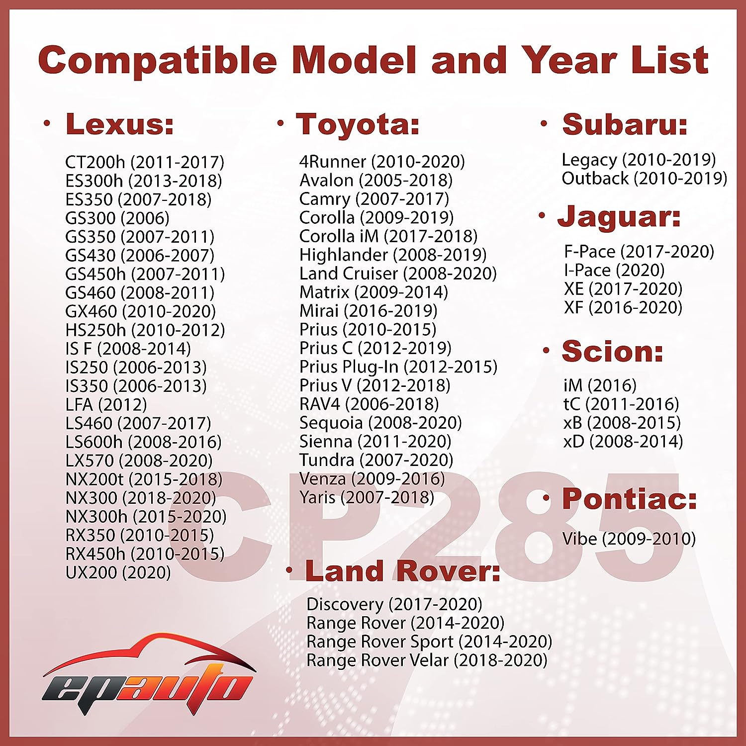 - Replacement for FRAM CF10285, Replacement for Toyota Genuine Part# 87139-02020, 87139-02090, 87139-06040, 87139-06080, 87139-07010, 87139-07020, 87139-08030, 87139-0D010, 87139-0D070, 87139-30040, 87139-30070, 87139-47010, 87139-47010-83, 87139-48020, 87139-50060, 87139-50100, 87139-52020, 87139-52040, 87139-60020, 87139-76010, 87139-YZZ08, 87139-YZZ10, 87139-YZZ16, 87139-YZZ20